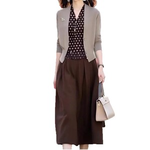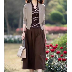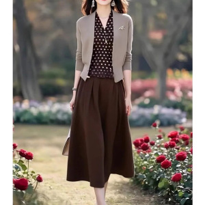 2025秋季新中式拼接假两件波点针织衫+半身裙套装女两件套裙子潮