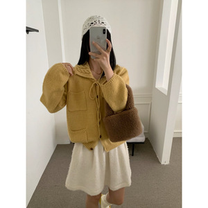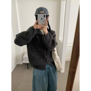 韩版简约清新减龄气质麻花编织单排扣保暖毛衣百搭宽松显瘦开衫冬