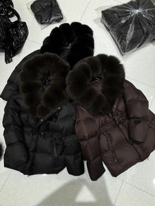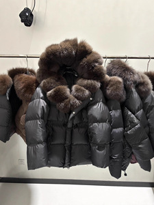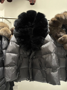 平湖跨境新狐狸毛领连帽款收腰显瘦短款宽松高端时尚羽绒服外套女