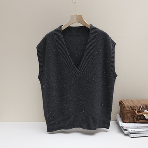 2025秋冬新款 点睛*亮片百搭宽松100羊毛圆领无袖针织背心马甲