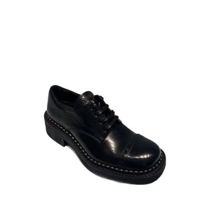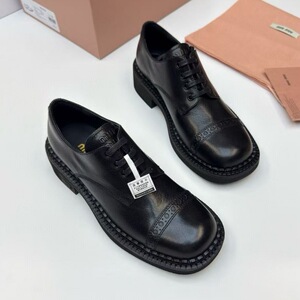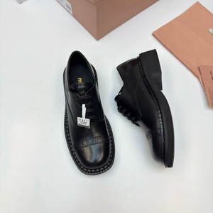 甜酷风系带深口单鞋女高版牛皮英伦真皮平底圆头粗跟百搭德比鞋