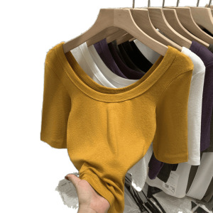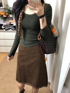 时尚简约韩系大u领正肩长袖T恤女2025夏季新款绿色独特上衣