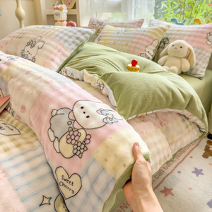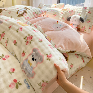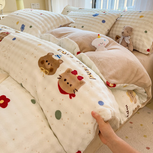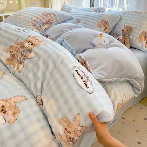 秋冬季可爱牛奶绒泡泡绒床上四件套加厚被套单件宿舍床单三件套