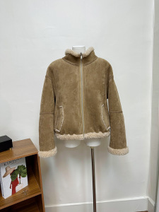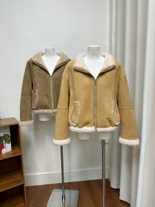 100羊毛 两面穿羊剪绒颗粒羊毛翻领立领秋冬皮毛一体皮草外套女