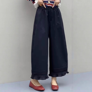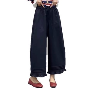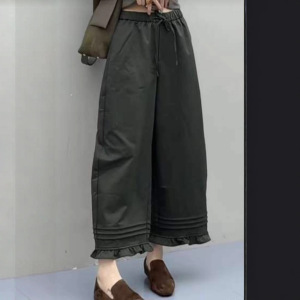 南油女装设计感花边休闲阔腿裤25秋新款气质百搭系带九分裤不退换