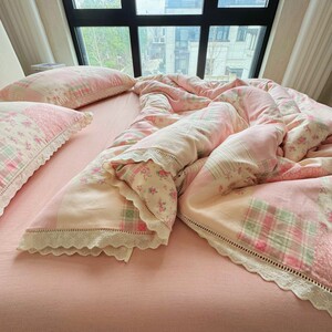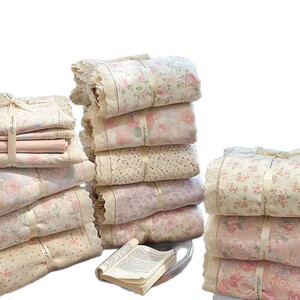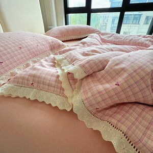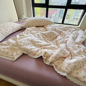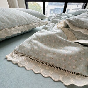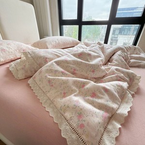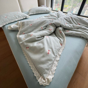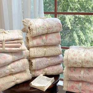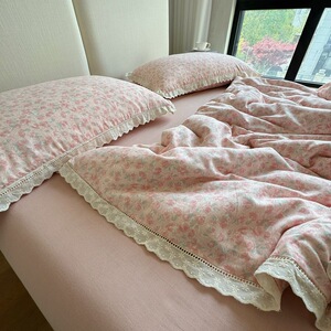 100纯棉四件套双层纱A类母婴级田园风床上全棉三件套儿童被套纱布