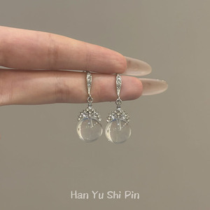 新款时尚清透琉璃球两戴款皇冠圆球耳钉轻奢高级感小清新几何耳环