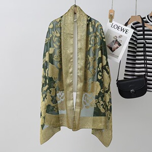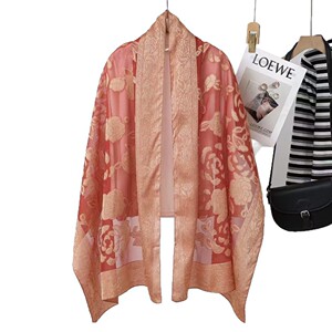中式时尚玫瑰剪花仿真丝披肩女夏季防晒外搭2025新款薄款高端围巾