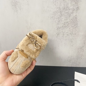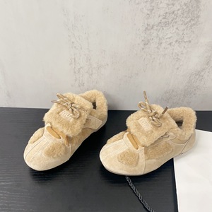 字母图案双绳带外翻毛装饰德训保暖豆豆鞋2025年冬款女童小板鞋批