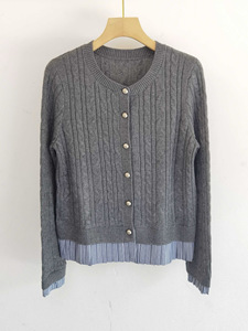 诗*L女装2025秋新款假两件拼接单排扣圆领针织开衫女3GA332051