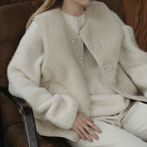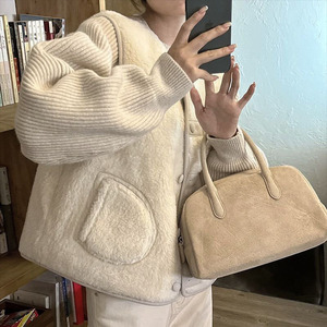 韩系温柔百搭V领可爱减龄无袖皮毛一体双面穿马甲背心上衣女89578