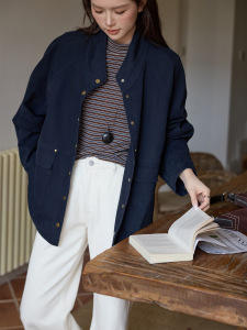 大码女装秋冬巴恩风工装时尚外套女 韩版宽松休闲上衣牛仔H型开衫