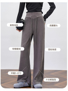 【中暖仿羊绒】25秋冬女装新仿羊绒软糯高腰直筒阔腿休闲长裤子女