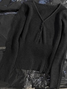 灰色V领长袖针织打底衫女春秋冬2025新款韩系高级感收腰内搭上衣
