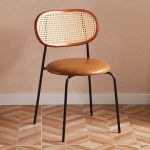 北欧奶油网红ins家用中古仿藤编椅简约阳台休闲靠背椅复古椅餐椅