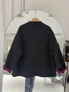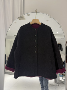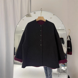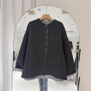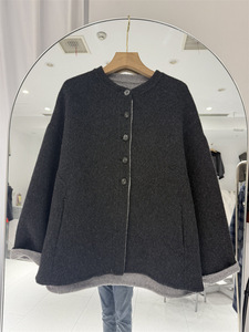 25年秋冬款双面同料羊毛大衣女单排扣常规圆领小个子韩版毛呢外套