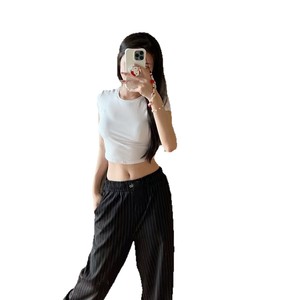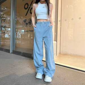 alo 美国代购 25春秋季新款 条纹松紧腰围logo直筒休闲裤长裤女