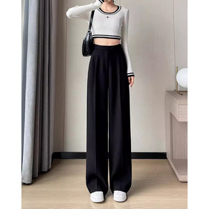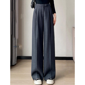 现货厂家批发 毛呢阔腿裤女新款加绒加厚小个子高腰垂感西装裤 女