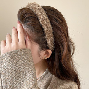 新款仿羊绒宽边发箍女甜美百搭毛绒绒头箍甜美奶油粉咖系发饰头饰