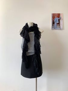 原创设计 蕾丝毛毛边个性y2k辣妹保暖围巾秋冬亚文化围脖叠戴风潮