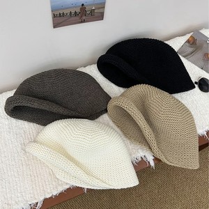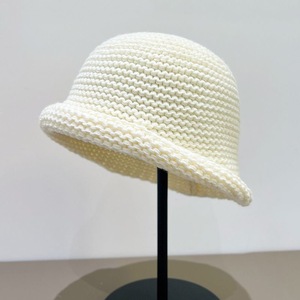 出口韩国粗针织卷边渔夫帽女秋冬季羊毛混纺大头围毛线帽保暖护耳