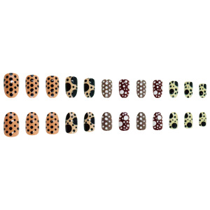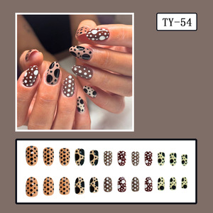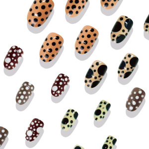 秋冬季咖棕跳色黑白波点图案设计短椭圆穿戴甲美甲甲片假指甲贴片