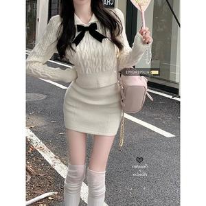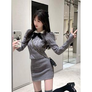 辣妹针织套装女气质短款毛衣秋冬季包臀裙半身裙子小香风两件套潮
