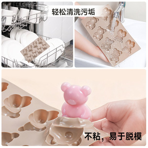 新款8连乖巧小熊造型蛋糕模具食品级硅胶易脱模法式慕斯硅胶模具