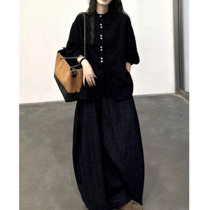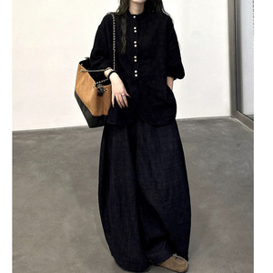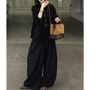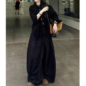 2025超火慵懒松弛感穿搭ootd一整套女秋装大方得体上衣阔腿裤套装