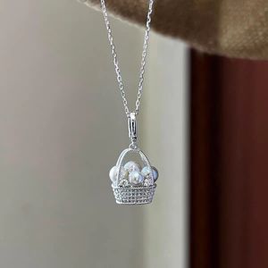 银色"财"篮子立体编织篮珍珠项链小众设计精致时尚高级感锁骨链