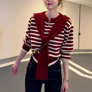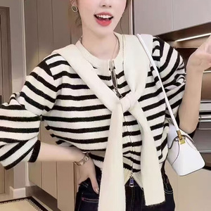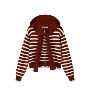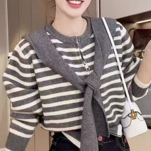 韩版条纹短款针织开衫女2025秋冬新款小众设计感宽松长袖毛衣外套