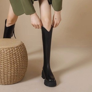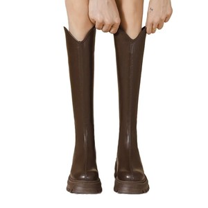2025秋冬新款韩版时尚长靴后拉链圆头厚底高筒靴高跟骑士靴女批发