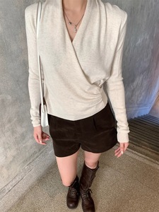 GV大白哥 长期主义 交叉叠领收腰针织衫早秋穿搭上衣慵懒高级长袖