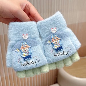 儿童手套拉布布冬季防寒保暖五指手套小学生写字翻盖两用宝宝手套