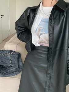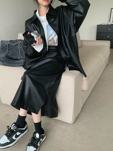 2025秋季新款美式辣妹风设计感百搭长袖皮衣高腰半身裙时尚套装女