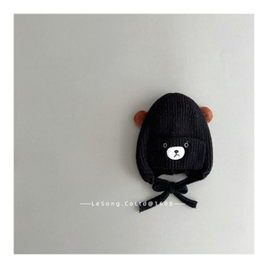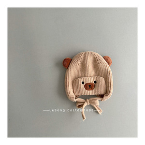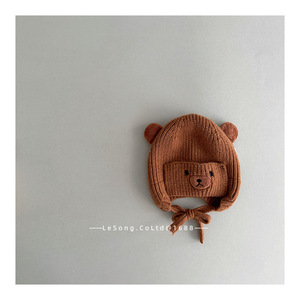 儿童秋冬保暖可爱小熊针织护耳帽韩版宝宝系带加里加厚毛线帽