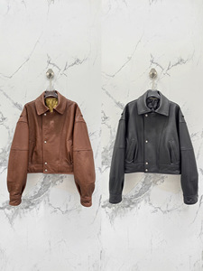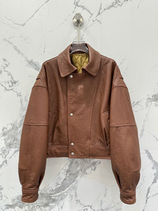 新款复古夹克摩登休闲皮衣外套進口YB新西兰泡皮短款宽松机车25秋