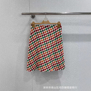 25早秋新款女装彩色斜格纹包臀显瘦高腰A字摆半身裙女裙半身裙女