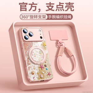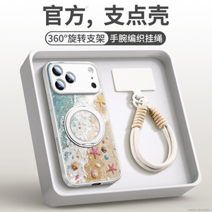 YY92油画海滩【砂粉色】液态玻璃★磁吸支架★双扣挂绳