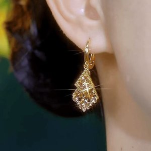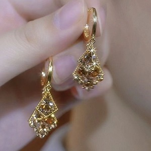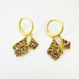 欧美轻奢设计感金色耳环超闪锆石时尚感耳饰超仙个性潮流菱形耳扣