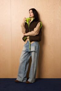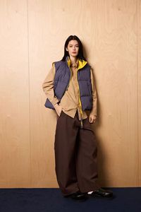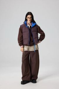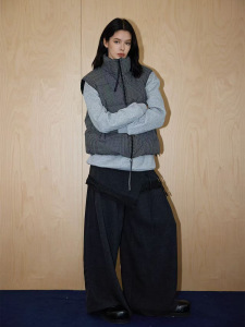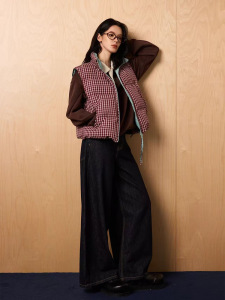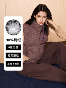 平湖霜林2025年90白鸭绒美式复古双面外搭格子马甲冬季新款学院风