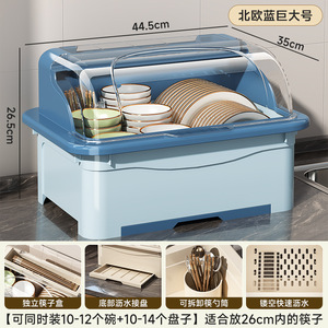 120°大翻盖【巨大号-北欧蓝】推荐6-7人碗筷分区防虫防油烟