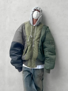 GRAILZ三色拼接棉服 灰绿色