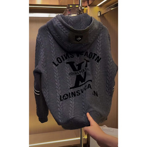 秋季新款高品质欧美男士加大休闲连帽夹克麦粒穗花型纯色连帽卫衣