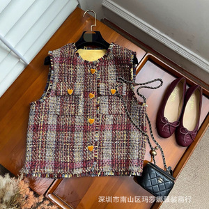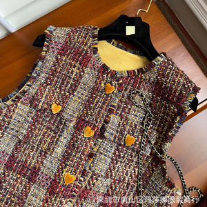 法式小香风马甲复古风紫色温柔风修身显瘦流苏边圆领无袖马夹上衣