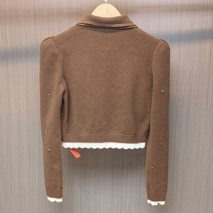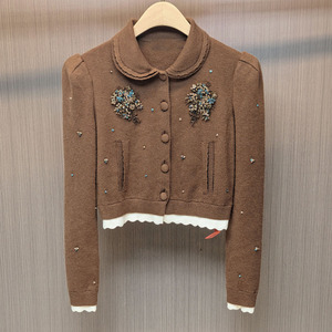 现货2025冬季新时尚气质翻领亮片立体花朵针织开衫上衣女