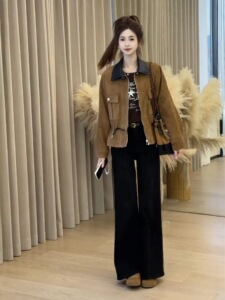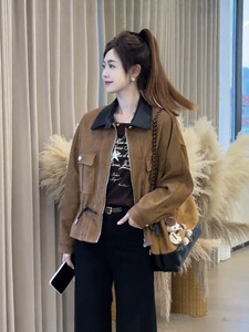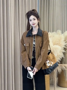 2025秋季时尚高级感鹿皮绒外套女韩系爆款收腰显瘦夹克超好看上衣