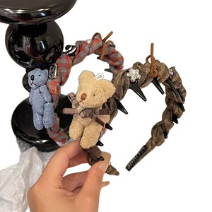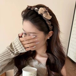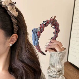 复古网格蝴蝶结发箍高级感百搭休闲风波浪头箍高颅顶发卡头饰新款