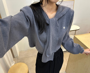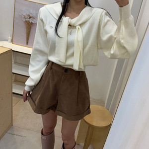 韩国chic秋冬新款韩系学院风简约披肩领拼接显瘦毛衫