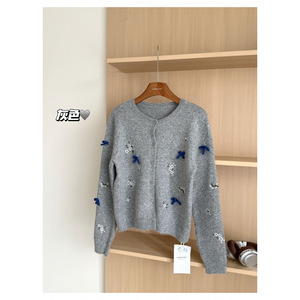 2025秋季新韩系立体蝴蝶结花卉刺绣毛衣开衫女甜美高级感针织上衣